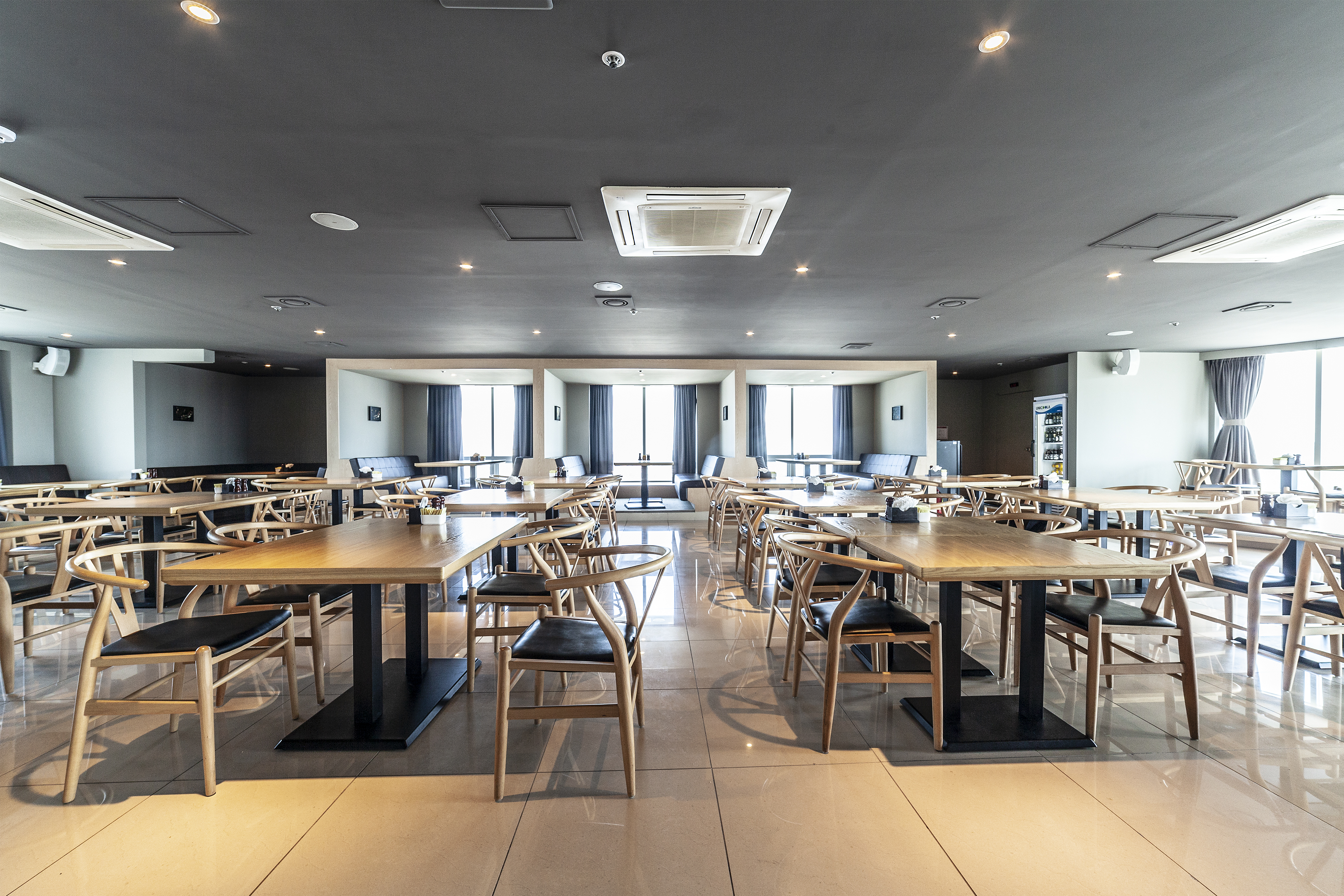 It is composed of cafe zone, buffet zone and meeting zone in order to reflect various tastes of customers.